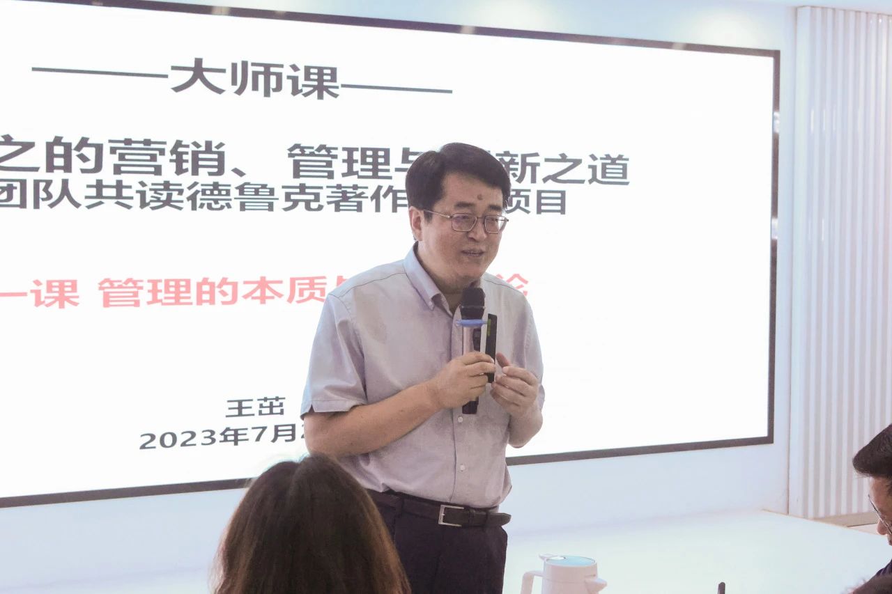 学习班特约讲师王茁介绍了项目背景和内容,他表示,德致福、鲁地瑞、克则达,非常荣幸、非常高兴、非常期待与大家共读、共学德鲁克,希望大家一起珍惜“四面荷花三面柳,一城山色半城湖”的美好环境,为了业绩提升、组织进步、自我成长,“旧学商量加遂密,新知培养转深沉”。
