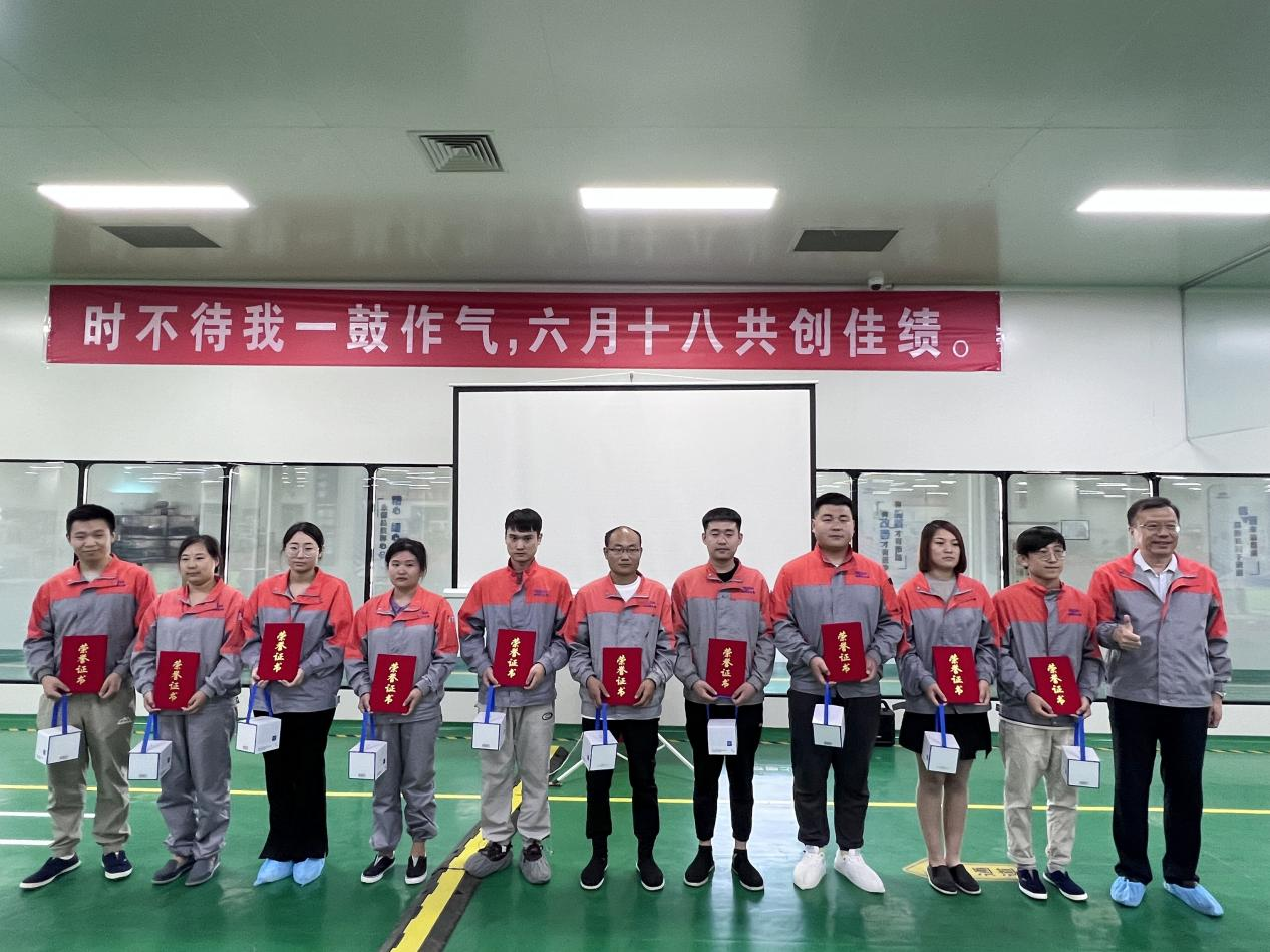 以年中总结暨618表彰大会为契机,王伟激励生产基地全体干部职工在下半年工作中继续强化责任感,树立“今天再晚也是早,明天再早也是晚”的效率意识,杜绝管理中存在的“宽、软、松”现象,狠抓落实,跳出“舒适圈”,步入“学习圈”,努力进入“成长圈”。自我加压、练好内功,按照“一米宽一万米深”的标准深耕自己的业务领域。严把安全、质量两大关口,抓住透明工厂建设黄金窗口期,竭尽全力把业务做精做细做实,铸造匠心品质,以出色的成绩助力公司高质量创新发展。