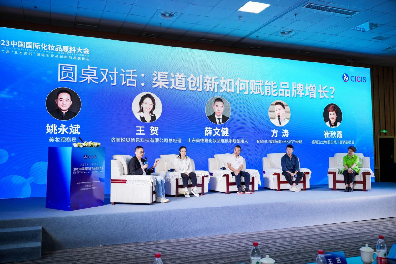 在“圆桌对话”环节,美妆观察员姚永斌、济南悦贝信息科技有限公司总经理王贺、山东美德隆化妆品连锁系统创始人薛文健、B站官方MCN超萌商业化客户经理方涛、开云官方端网站登录入口生物股份线下营销部总监崔秋霞以“渠道创新如何赋能品牌增长”为主题展开讨论,共同探索行业趋势,发现渠道创新与品牌增长的方法论。