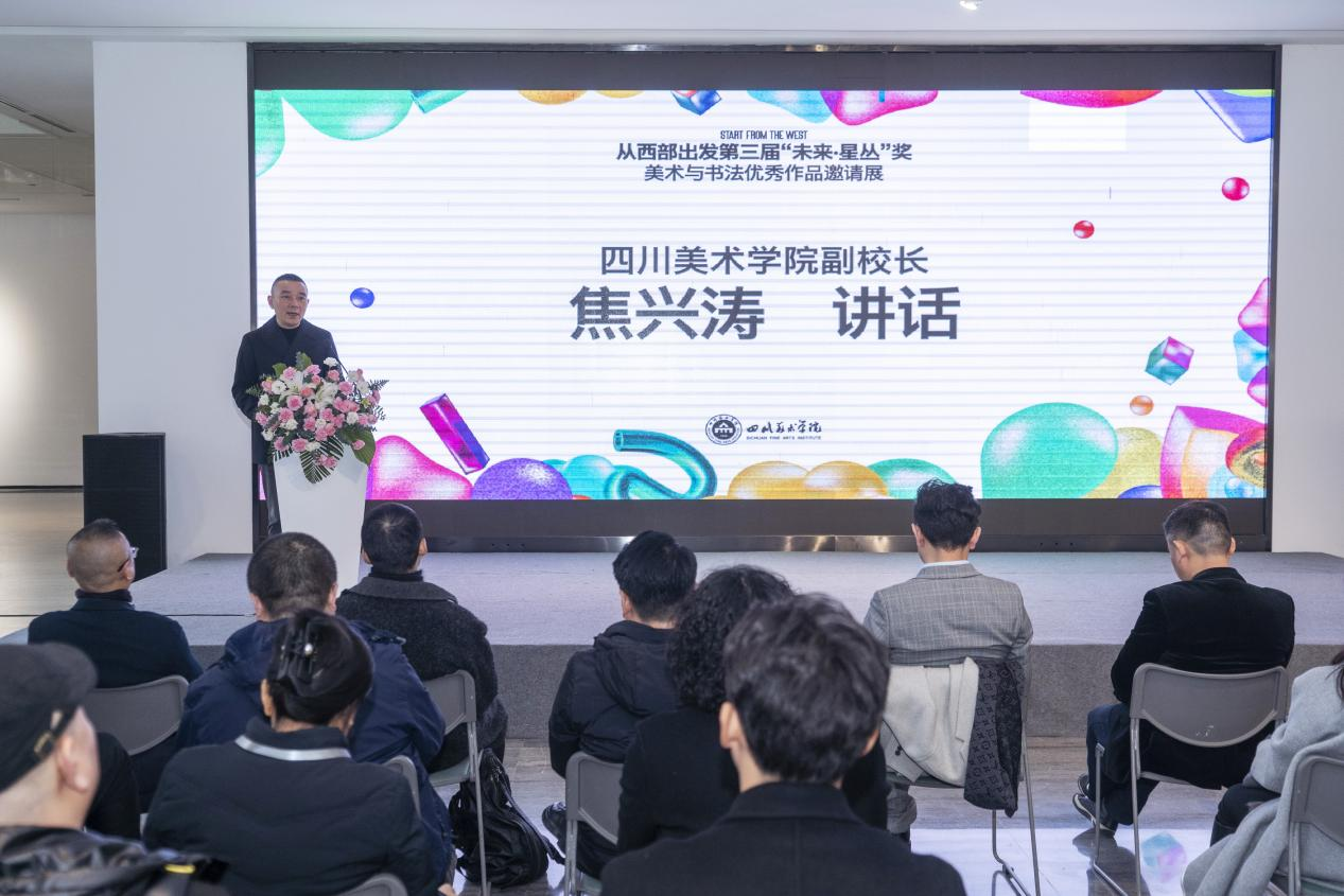 全国艺术专业学位研究生教育指导委员会秘书长宋慧文在开幕式致辞中提到,本次活动的举办正逢其时,2022年新版研究生教育学科专业目录发布,对艺术学门类进行了较大调整,美术与书法从此进入了专业博士时代。四川美术学院副院长焦兴涛在开幕式致辞中指出,四川美术学院以“未来·星丛”奖项为平台,聚18所西部高校之力共谋艺术专业学位研究生教育的未来发展,勠力提升“美术与书法”在社会服务、夯实文化软实力以及构建人类命运共同体方面的作用,共同致力于培养艺术行业领军者,养成艺术未来的守护人。