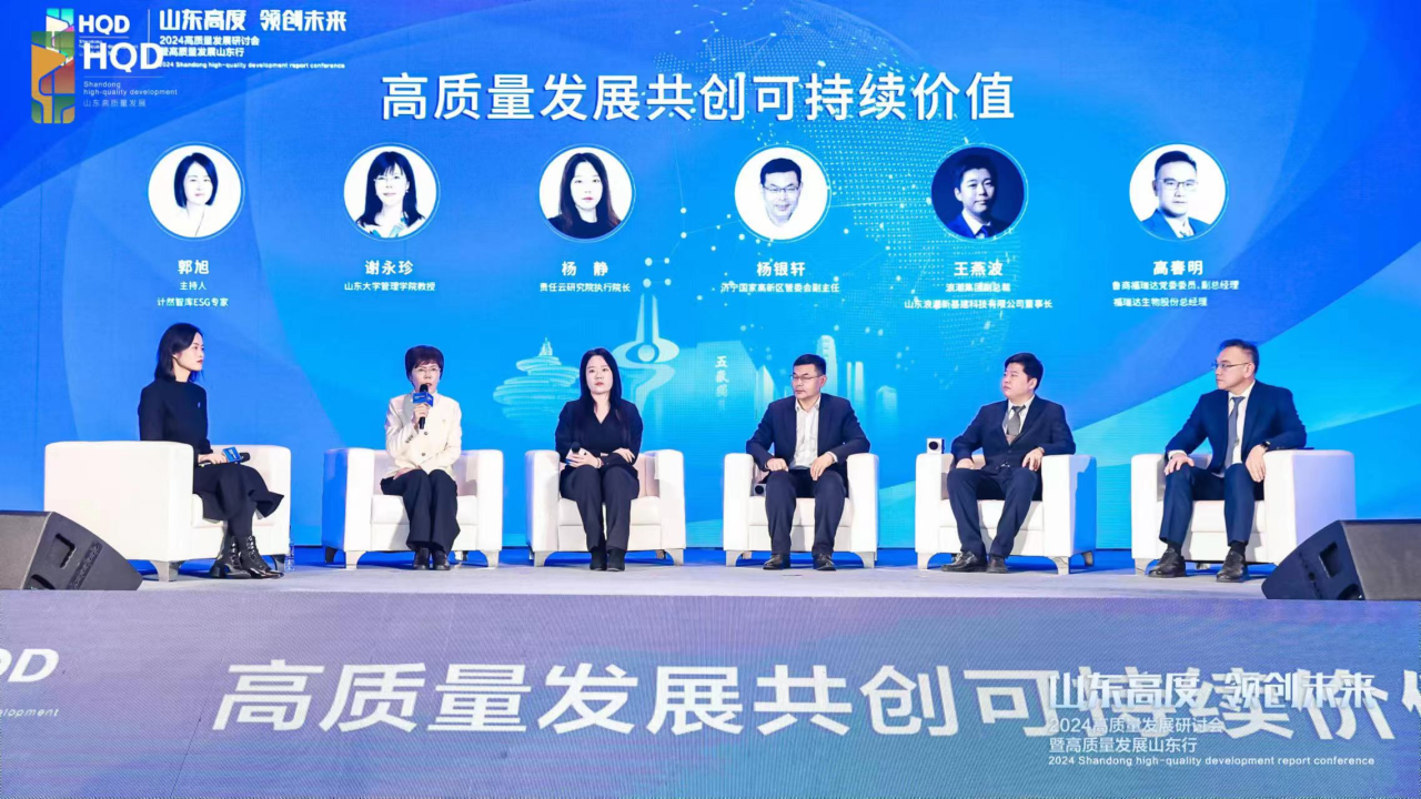 研讨会上还举行了圆桌论坛,在计然智库ESG专家、 ESG(山东)研究联合体专家郭旭的主持下,山东大学管理学院教授谢永珍,责任云研究院执行院长杨静,济宁国家高新区管委会副主任杨银轩,浪潮集团副总裁、山东浪潮新基建科技有限公司董事长王燕波,鲁商开云官方端网站登录入口党委委员、副总经理、开云官方端网站登录入口生物股份总经理高春明围绕“高质量发展共创可持续价值”主题畅所欲言,共同研讨高质量发展新路径。